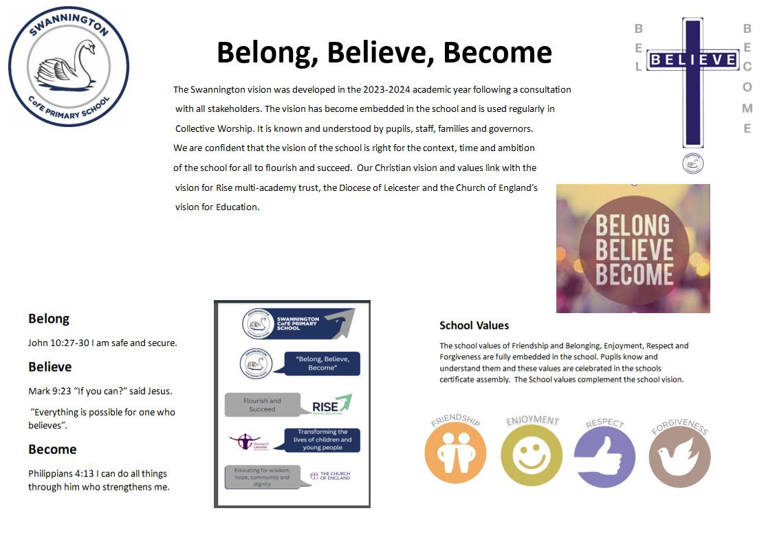 The staff, parents and governors of Swannington C of E Primary School have consulted on our School Values and Vision, and how we live as a Christian School community. We therefore aim: