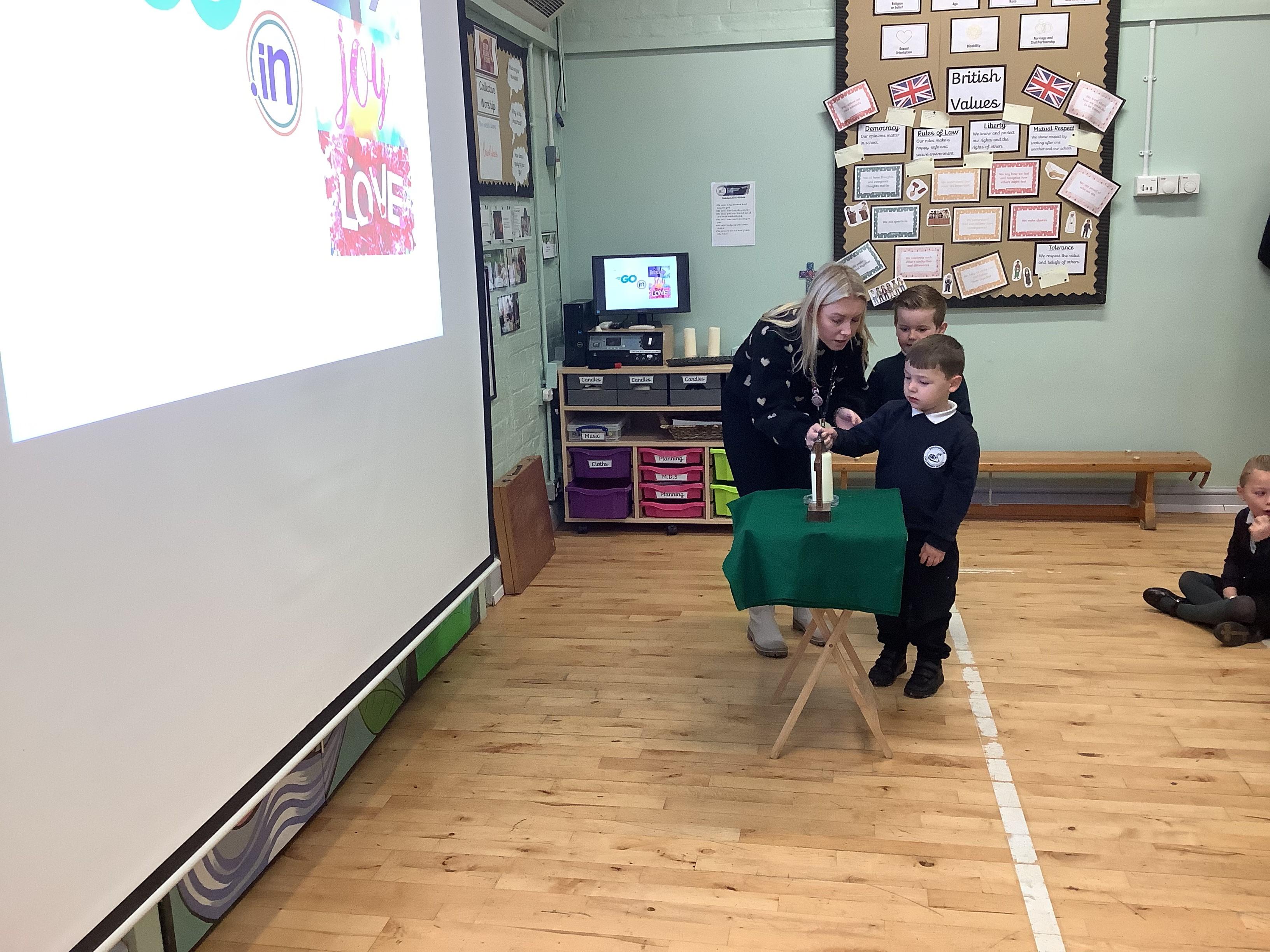 Collective Worship is an important part of the school day where we take time to come together and reflect as a whole school community. We hold a daily act of Collective Worship in school which is a time where children can connect with their own inner peace and response to what is being shared and for the whole school community to appreciate the school's distinctively Christian Values in the context of wider Christian Worship.